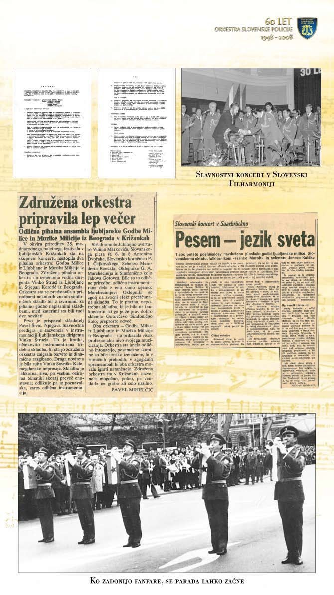 Postavljena je bila ob 60-letnici delovanja Policijskega orkestra, in sicer v preddverju Gallusove dvorane Cankarjevega doma na dan koncerta, 2. aprila 2009, njen namen pa je bil delavcem policije in tudi širši javnosti prikazati razvojno pot godbe ljudske milice od leta 1948 do danes. Razstavo so si od 3. aprila do 5. maja v avli MNZ lahko ogledali delavci MNZ, nato pa je gostovala tudi na območju vseh enajstih policijskih uprav. Tam so bile organizirane ob različnih prireditvah - za dan policije, ob občinskih praznikih ali drugih priložnostih. Navzoči novinarji so bili navdušeni nad zbranim bogatim in sistematično urejenim gradivom, gostovanjem so pripisali velik pomen z željo, da bi bilo takih prikazov dela iz policijskih vrst čim več. Tudi zapisi zunanjih obiskovalcev v knjigi vtisov so pohvalni in polni navdušenja. Od 3. do 25. novembra je bila razstava na ogled tudi v Policijski akademiji.