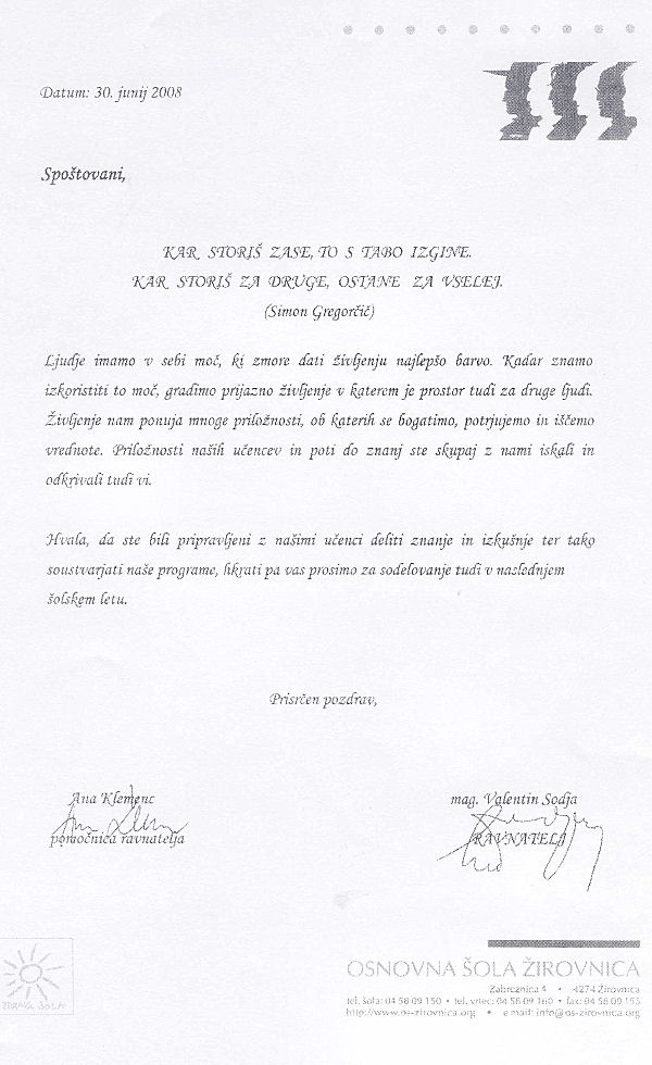 Objavljamo zahvalo Osnovne šole Žirovnica policistom PP Jesenice.