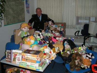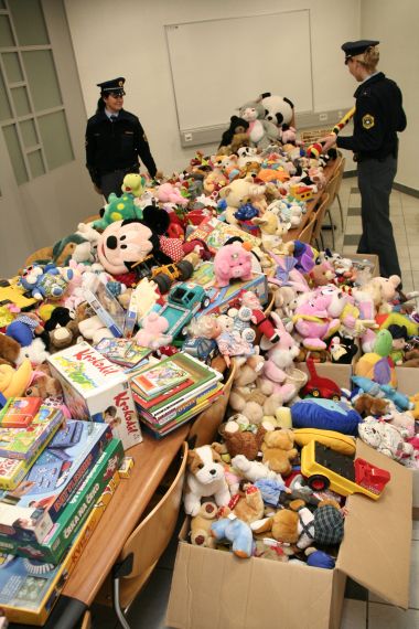 The police sent over two lorry loads of toys to the central depot!