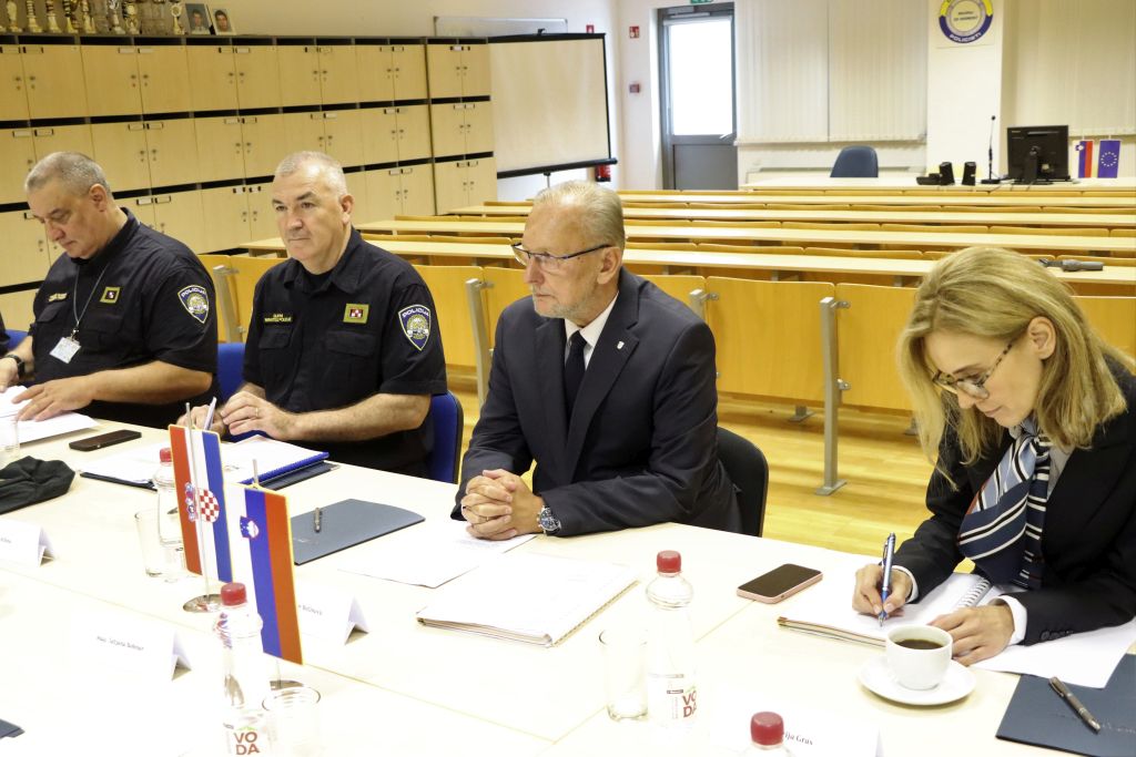 Na mejnem prehodu Obrežje sta se danes, 29. avgusta 2022, srečala slovenska notranja ministrica mag. Tatjana Bobnar in hrvaški notranji minister Davor Božinović. Srečanja se je z delegacijo udeležil tudi v. d. generalnega direktorja policije mag. Boštjan Lindav.