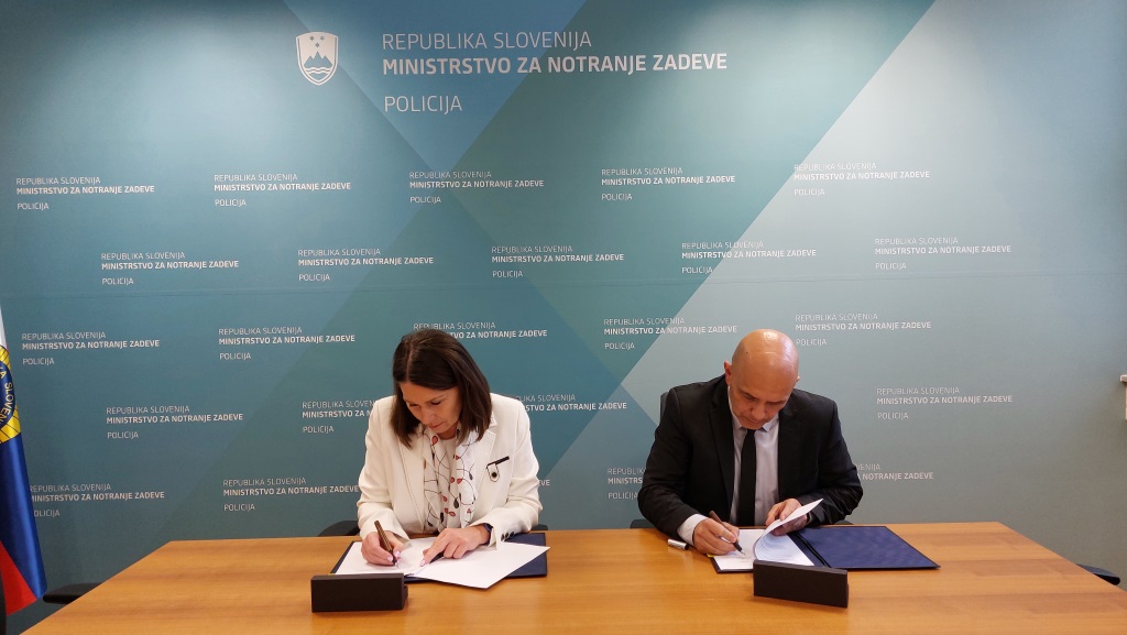Vršilec dolžnosti generalnega direktorja policije mag. Boštjan Lindav in predsednica Računskega sodišča Republike Slovenije Jana Ahčin sta danes, 15. novembra 2022, podpisala prenovljeni sporazum o medsebojnem sodelovanju med institucijama.