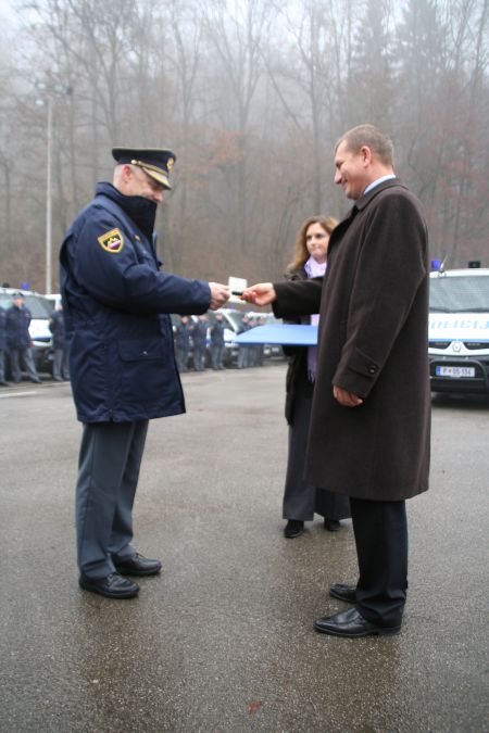 V prostorih Policijske akademije v Tacnu v Ljubljani jih je generalnemu direktorju policije Jožetu Romšku slovesno predal minister za notranje zadeve Dragutin Mate.