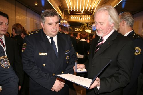 - Policijski orkester Dunaj za uspešno sodelovanje s slovenskim policijskim orkestrom, ki je obrodilo že mnogo sadov. Pomembna so bila tako gostovanja dunajskega orkestra pri nas kot tudi gostovanja našega policijskega orkestra v Avstriji. Spominski znak je prevzel vodja orkestra Erenst Zehetner.