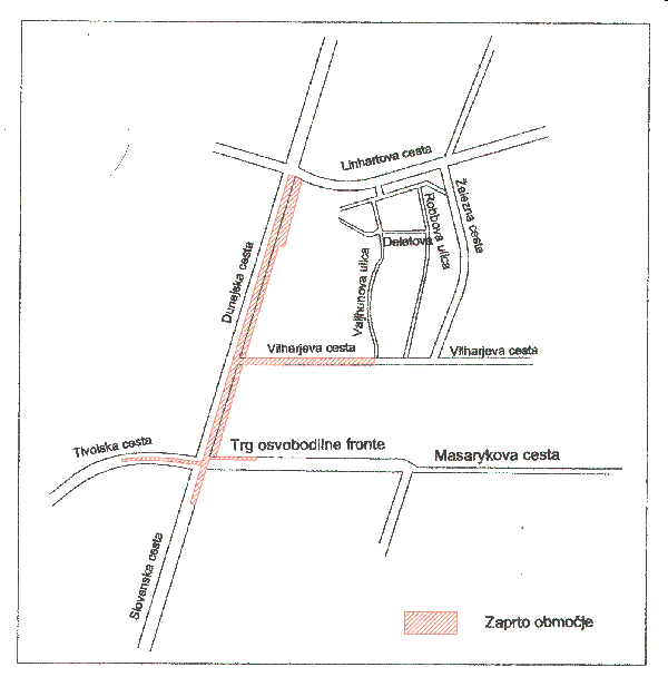 - popolna zapora VILHARJEVE CESTE, od Železne ceste do Dunajske ceste, z možnostjo lokalnega dovoza do Valjhunove ulice.