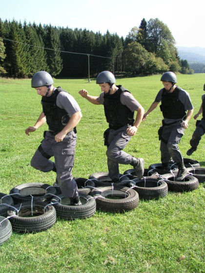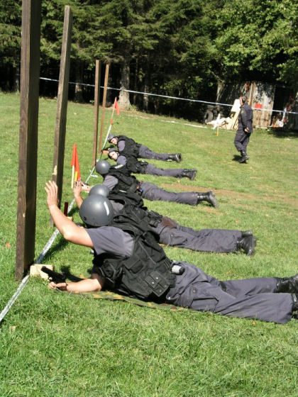 V policijskem Vadbenem centru v Gotenici je danes, 26. septembra 2003, letos že dvanajstič zapored potekal preizkus usposobljenosti policistov Posebne policijske enote Generalne policijske uprave.