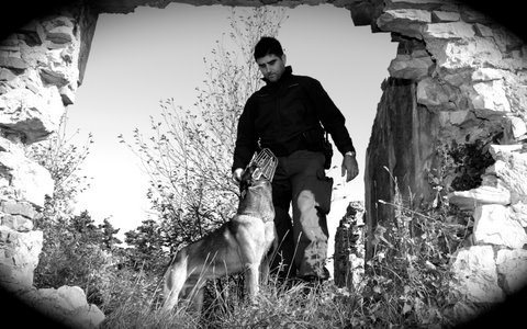 Avtor je s fotografskim aparatom zabeležil psihološko povezavo človeka z živaljo, ki je izražena v izrazu obraza in napetosti pričakovanja v telesu živali.