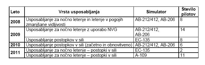 Posadke Letalske policijske enote iz Uprave za policijske specialnosti opravljajo zelo raznovrstne in zahtevne naloge s helikopterji. Kvalitetno, učinkovito in predvsem varno delo pa se lahko zagotovi le z nenehnim ustreznim usposabljanjem in urjenjem članov letalskih posadk, tudi na simulatorjih letenja.