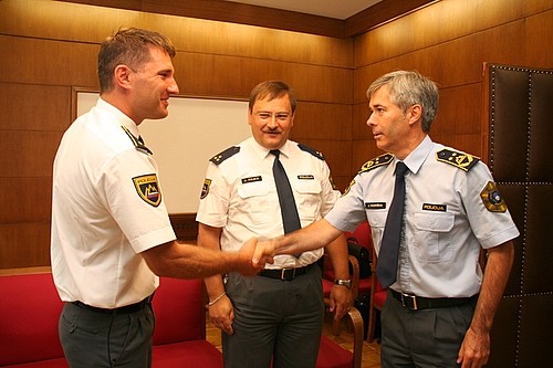 Slovenska policista pred odhodom na Hrvaško sprejel generalni direktor policije Janko Goršek (5. 7. 2011)