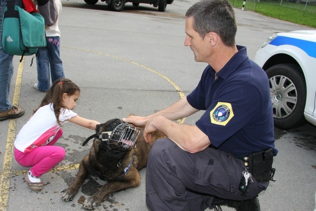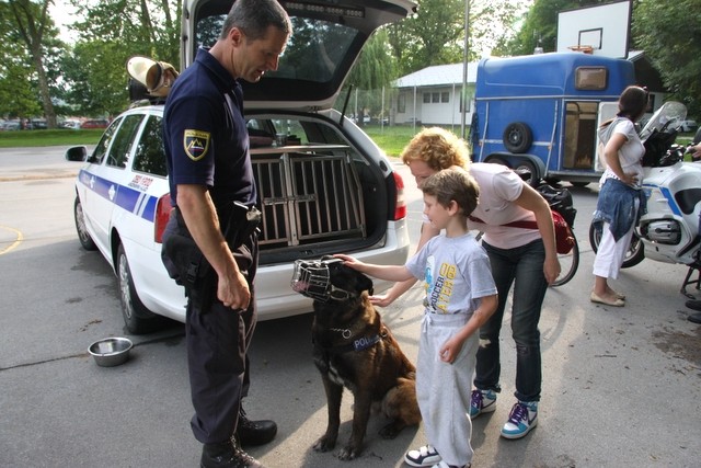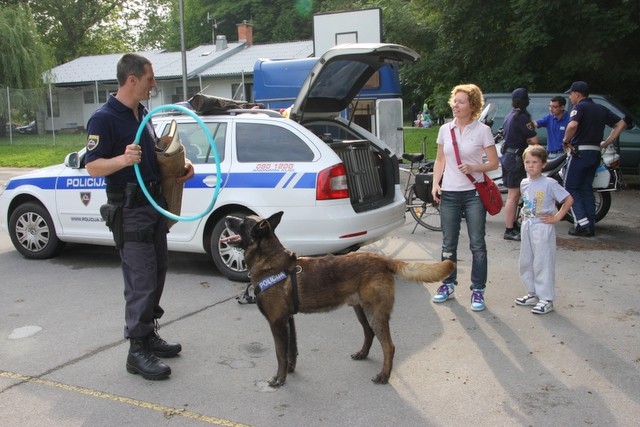 Otrokom so se predstavili še policisti konjeniki, policist motorist, policistka kolesarka in že vsem dobro znani policijski "kuža" Arni z vodnikom Janezom.