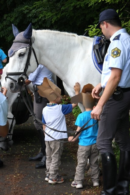 Malčki so se z velikim zanimanjem "muzali" okoli policijskih lipicancev in se jim plašno poskušali približati. Ko so ugotovili, da so policijski konji zelo prijazni, so jih ob dovoljenju konjenikov tudi previdno pobožali.