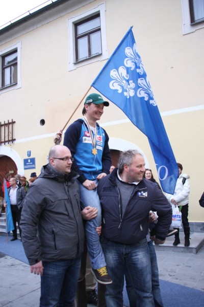 Rok Marguč, ki je s še dvema vrhunskima športnikoma, zaposlenima v policiji, pred nekaj dnevi zaznamoval zgodovino slovenskega športa, se je danes, 29. januarja 2013, vrnil iz Kanade. V domačem kraju so ga pričakali njegovi najbližji, zvesti navijači, sponzorji in predstavnik policije. Marguč je namreč zaposlen v Oddelku vrhunskih športnikov v Policijski akademiji.