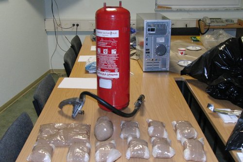 Aprila letos so osumljeni organizirali prevoz okoli 6,1 kg prepovedane droge heroin na relaciji Makedonija - Slovenija - Švica, pri čemer so mejni švicarski varnostni organi odvzeli prostost 26-letnemu državljanu Slovenije, ki se nahaja v švicarskem priporu. Heroin je kriminalna združba skrila in tihotapila v gasilnem aparatu slovenskega proizvajalca.