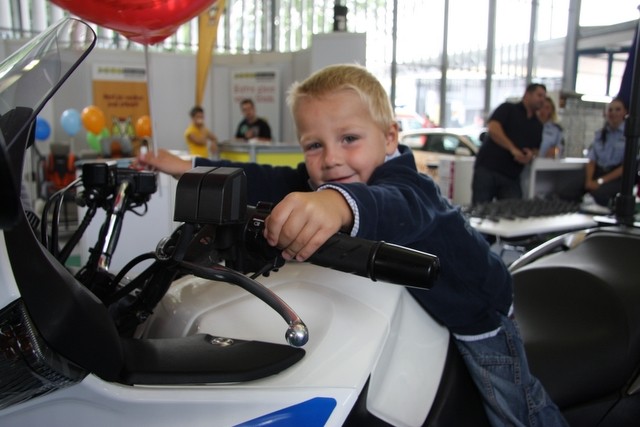 Obiskovalci so lahko ob napotkih izkušenih policistov "vozili" motor na simulatorju vožnje z motornim kolesom in tako preizkusili svoje spretnosti.