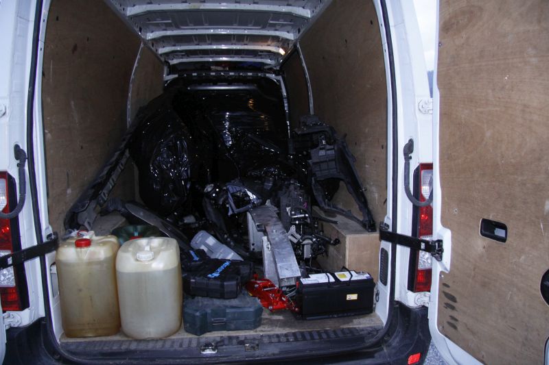 Kombinirano vozilo storilcev, v katerem so deli razstavljenega vozila Mercedes Benz S 350.