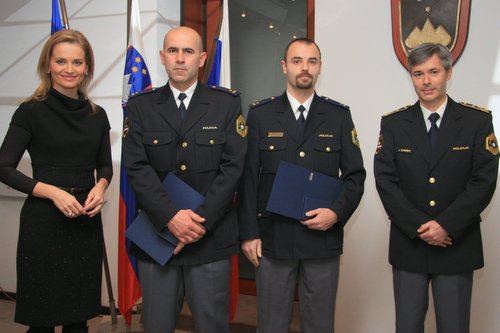 - policista Mitja Klančar in Timotej Funkl iz Policijske postaje Trbovlje, ker sta rešila mlado žensko, ki je nameravala storiti samomor