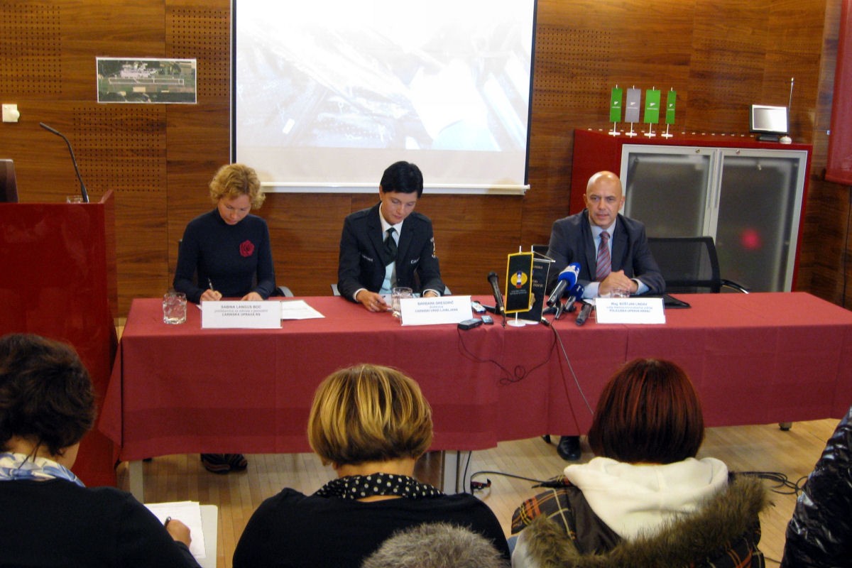Glavna govorca sta bila Barbara Gregorič, direktorica Carinskega urada Ljubljana (na fotografiji na sredini), in mag. Boštjan Lindav, vodja Sektorja kriminalistične policije Policijske uprave Kranj. (Foto: Carinska uprava RS)