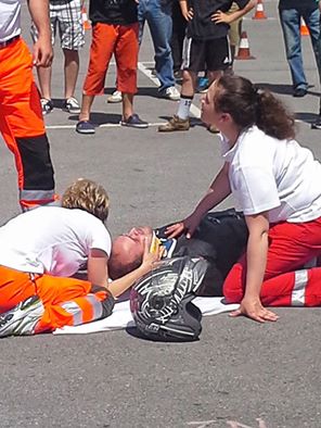 Vzporedno s tem so potekale tudi druge aktivnosti za pridobitev novih oziroma nadgraditev že pridobljenih znanj za varno udeležbo v cestnem prometu. V ta namen se nam je pridružila ekipa urgentnih reševalcev iz Zdravstvenega doma Litija, ki je s svojim bogatim in strokovnim znanjem prikazala pravilno nudenje prve pomoči poškodovanemu motoristu, predvsem pravilno snemanje varnostne čelade.