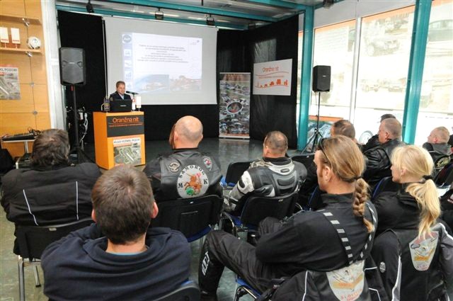 Prireditve se je kljub oblačnemu in hladnemu vremenu udeležilo več kot 50 motoristov iz večine pomurskih moto klubov. Po pozdravnih nagovorih direktorice zavoda Oranžna nit Polonce Kočar in vodje sektorja uniformirane policije PU Murska Sobota Slavka Škerlaka je sledilo predavanje inšpektorja Srečka Šteinerja o novi prometni zakonodaji s poudarkom na določbah, ki so stopile v veljavo s 1. oktobrom 2011 in policistom omogočajo začasni odvzem vozniškega dovoljenja za hujše prometne prekrške. Sledilo je še predavanje inštruktorja varne vožnje Dušana Pohovnikarja, ki je prisotne opozoril na nekatere najpogostejše nevarnosti, ki prežijo na voznike enoslednih motornih vozil in jim svetoval, kako se tem nevarnostim izogniti.