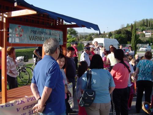 Na informacijski točki v Šempetru pri Gorici so bili tako navzoči tudi tamkajšnji občinski redarji, na parkirišču pa je bil pripravljen manjši poligon za otroke kolesarje.