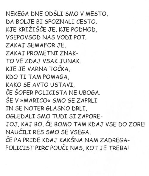 Kasneje sta policista spremljala otroke in njihove učitelje po mestnih ulicah v Novi Gorici, kjer so si osnovnošolci ogledali potek prometa po križiščih in krožiščih. Pri tem sta jih opozorila predvsem na pravila za varno udeležbi pešcev v cestnem prometu. Skupaj so si ogledali tudi t. i. varne točke v mestu (projekt UNICEF-a) in lokacije pomembnejših mestnih stavb.