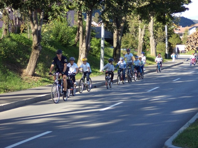 Policist je otroke podučil o pravilnem nošenju zaščitne kolesarske čelade in preveril ali imajo otroci čelade pravilno nameščene. Skupaj so obnovili poznavanje cestnoprometnih predpisov za varno vožnjo s kolesom in se v spremstvu policista odpeljali na krajši izlet. Med vožnjo so dosledno upoštevali prometne znake in z roko nakazali spremembo smeri. Otroci so upoštevali navodila policista, vozili so previdno in se vsi varno pripeljali na cilj.