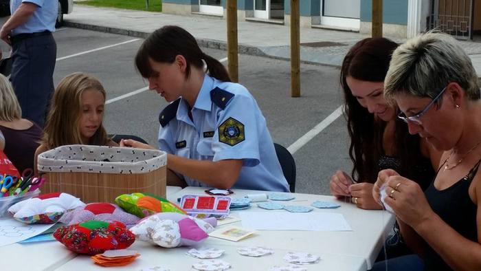 V družbi otrok in njihovih staršev so v prijetnih in ustvarjalnih popoldanskih uricah v središču starega mestnega jedra Brežic izdelovali živopisane blazinice ter Brežičanom predstavljali svoje delo, namenjeno skrbi za varnost ljudi.