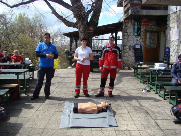 Ekipa nujne medicinske pomoči Zdravstvenega doma Sevnica je na Lisci s praktičnim prikazom temeljnega postopka oživljanja s pomočjo defibrilatorja osvežila znanje vsem udeležencem, ki so se nato v postopku oživljanja preizkusili tudi sami.