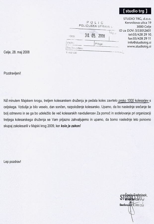 Direktorica podjetja Studio trg se zahvaljuje Policijski upravi Celje za pomoč in sodelovanje pri organizaciji prireditve.